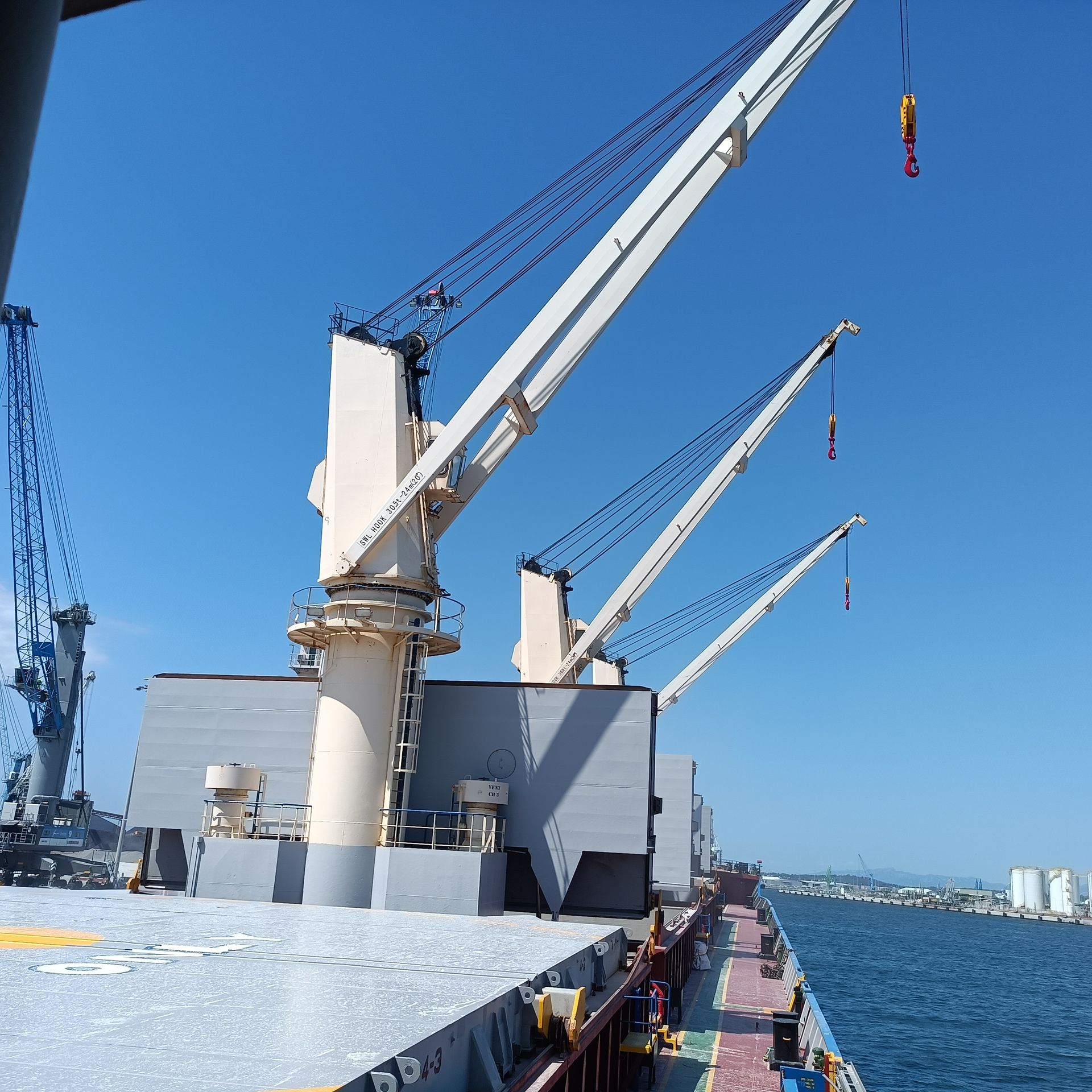 The cargo was loaded by means of two shore cranes fitted with spreader and nylon bands.